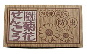 また、「かえる印のナチュラルかとり線香」は防除用医薬部外品ですが、「菊花せんこう」はそうではありません。医薬部外品の認可を受けるためにはピレトリンの量を基準以上にする必要があるそうです。どちらも天然素材100%ですが、「菊花せんこう」の方がよりマイルドとなります。ピレトリン0.1%ですと蚊が除けるだけですが、0.4%ですと「蚊取り」効果があります。ご使用場所、ご使用対象等により、お使い分け下さい。)